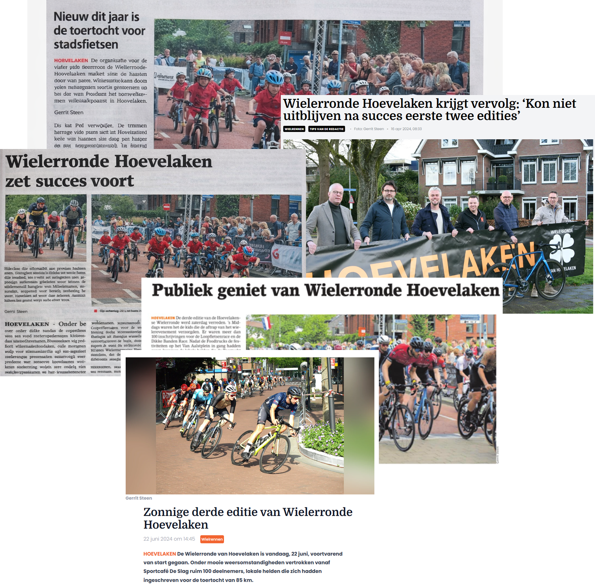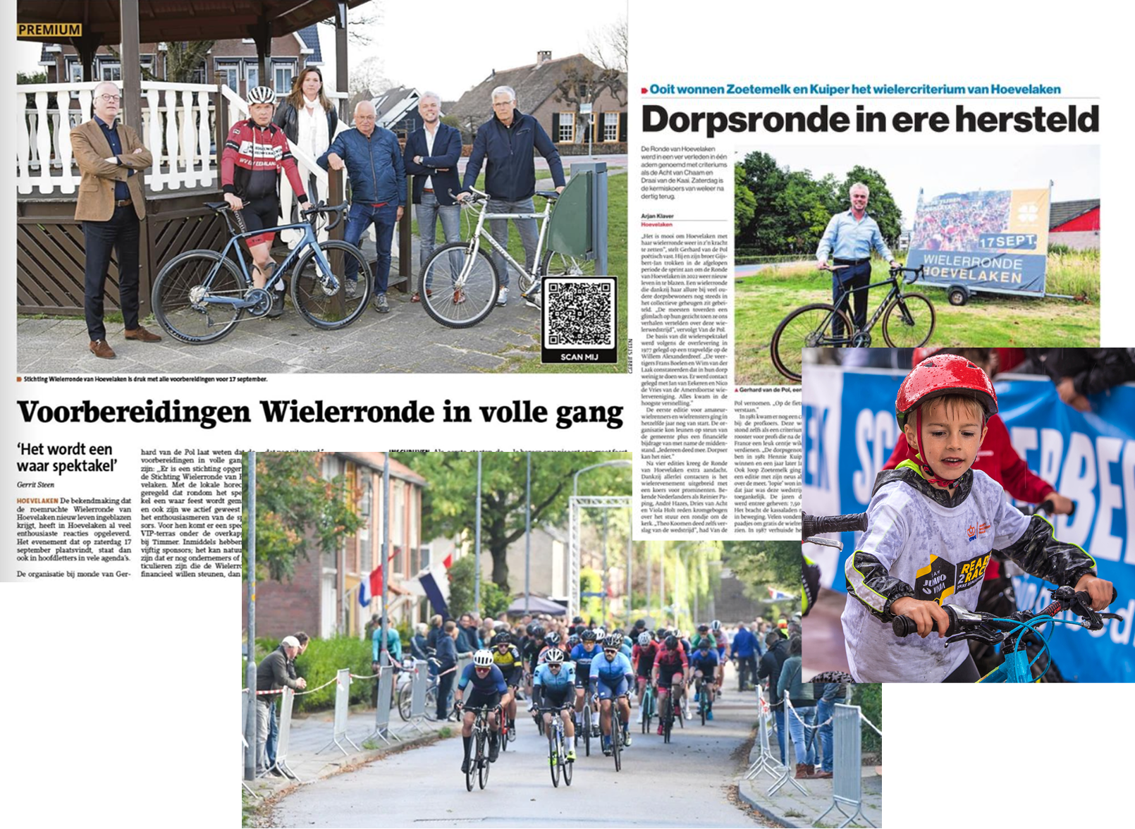 KNWU-renners en Hoevelakerse recreanten razen samen door de dorpsstraten: een dapper maar iets te optimistisch idee, gelukkig zonder ongelukken. Kinderen rijden hun rondjes rondom het Van Aalstplein. Het is precies die mix die het dorp trots maakt.