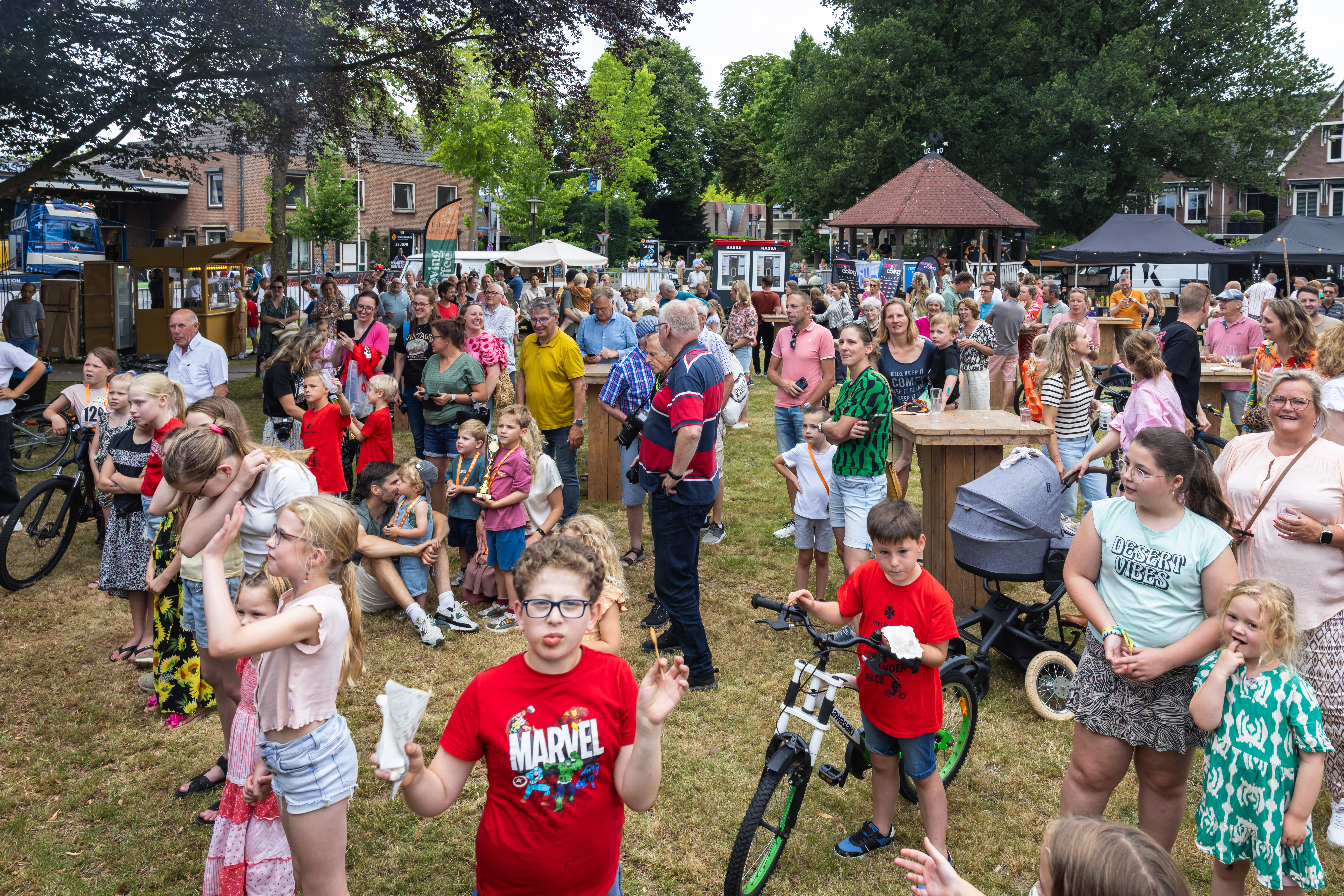 Voor de kleintjes is er een springkussen aanwezig, waar ze lekker kunnen spelen terwijl de rest geniet van de koers en de gezellige sfeer.
